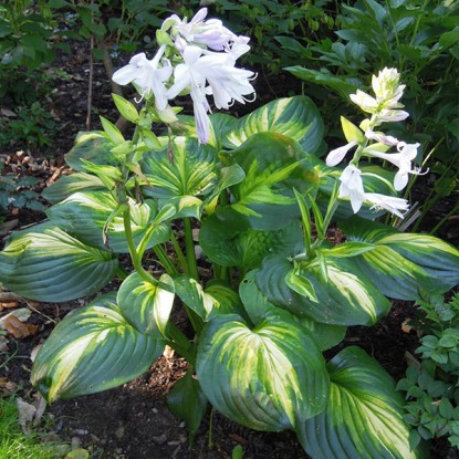 Хоста "Кафедрал Виндоус-NB" – это великолепное многолетнее растение, которое станет настоящим украшением вашего сада. Этот сорт хосты отличается крупными, сердцевидными листьями с ярко выраженными жилками и контрастной окраской. Листья имеют насыщенный зелёный цвет с золотисто-жёлтой каймой, что придаёт растению особую декоративность.
