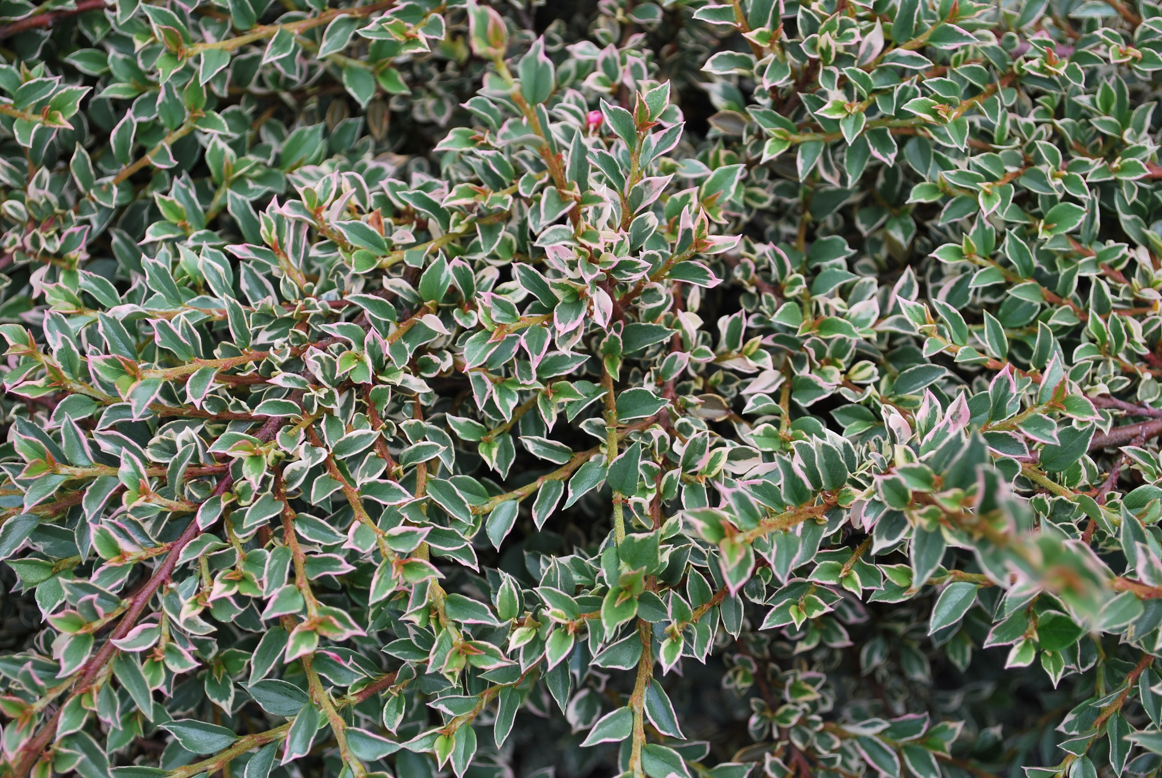 Кизильник горизонтальный Вариегатус (Variegatus) – это декоративный кустарник, который станет настоящим украшением вашего сада. Его изящные, стелющиеся побеги образуют плотный ковер, а мелкие, овальные листья с белой каймой придают растению особую привлекательность. Осенью листья приобретают яркие оттенки красного и оранжевого, создавая эффектный контраст.